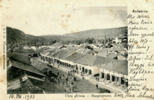 На знімку чітко видно Ulica Główna (Hauptstrasse). Погляньте на деталі, які роблять цей кадр особливим: